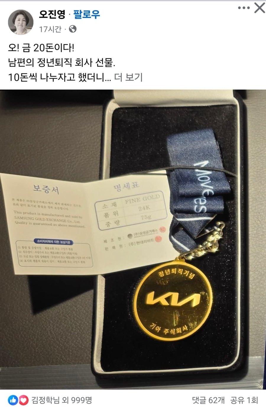 기아자동차 정년 퇴직 선물 수준 ㅎㄷㄷ ,,